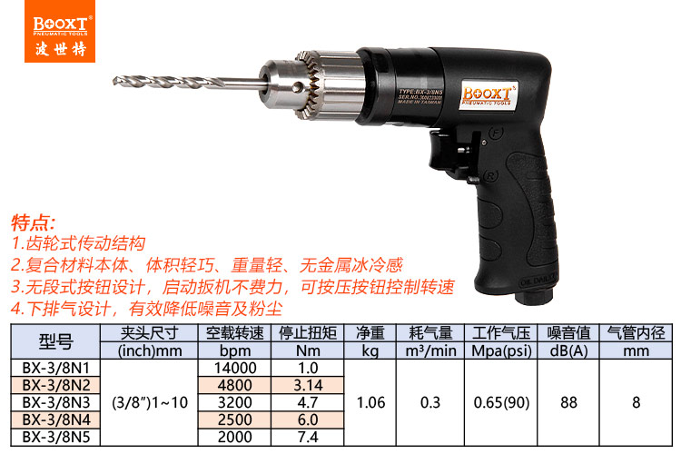 東莞市強(qiáng)勁五金工具有限公司提供臺灣BOOXT波世特品牌氣動工具,高速氣鉆BX-3/8N1廠家直銷,首件享特價(jià)。咨詢熱線:4008301980