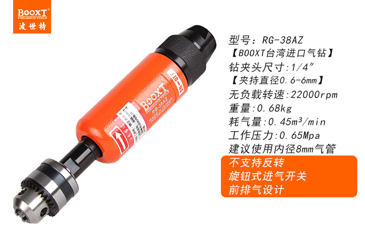 東莞市強勁五金工具有限公司提供臺灣BOOXT波世特品牌氣動工具,直柄氣動鉆RG-38AZ廠家直銷,首件享特價。咨詢熱線:4008301980