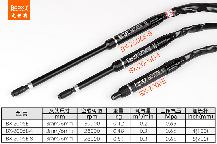 東莞市強(qiáng)勁五金工具有限公司提供臺(tái)灣BOOXT波世特品牌氣動(dòng)工具,加長刻磨筆BX-2006E-8廠家直銷,首件享特價(jià)。咨詢熱線:4008301980